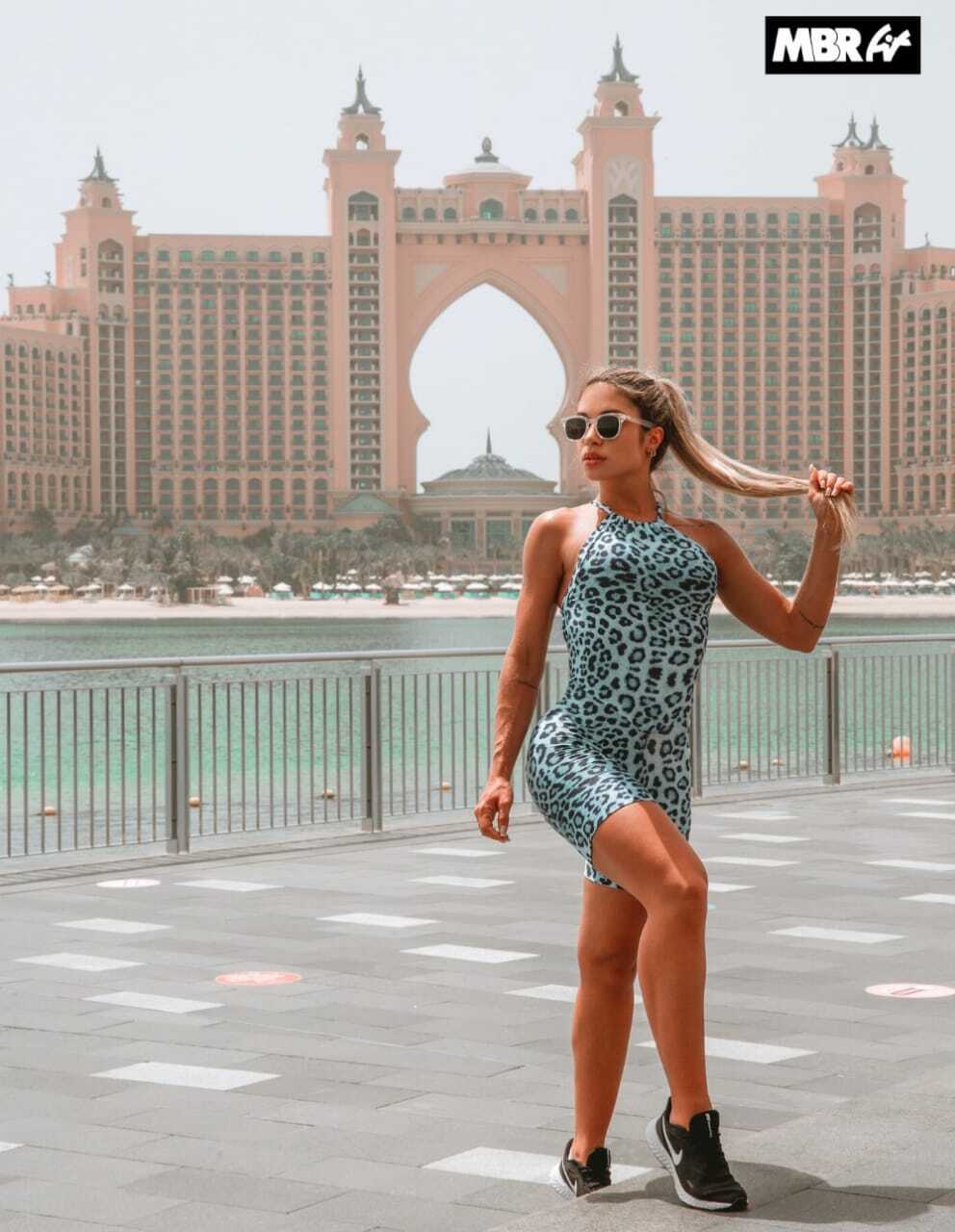 着画アップ★MBR Fit★ブルーヒョウ柄ショートパンツオールインワン★ワンサイズ(S~L)★ブラジリアンフィットネスウェア